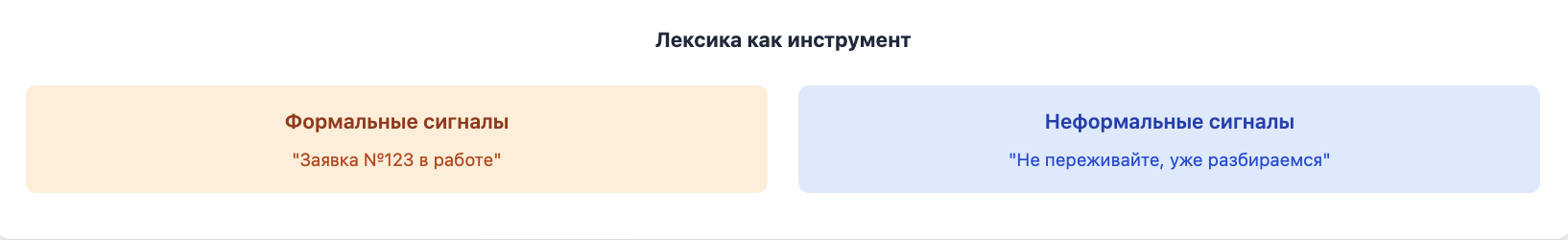 - вежливое подтверждение «мы уже разбираемся» снижает тревожность;