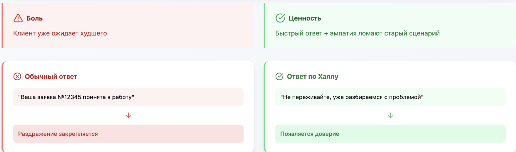 Таким образом, теория Халла превращается не в абстрактную концепцию, а в рабочий инструмент: саппорт учится менять поведение клиентов через последовательные позитивные подкрепления.